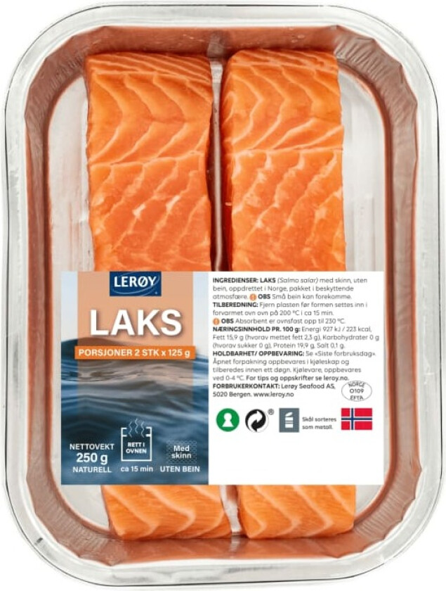 LERØYLaks Porsjoner m/Skinn 2x125g Aluform