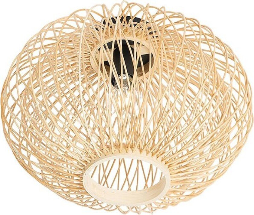 LindbySolvira taklampe, flettet bambus, rund